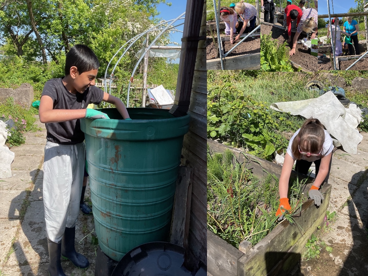 S2 have been soaking up the wonderful sunshine when they have been up to Teak St Allotments on St. James Road in Blackburn.
