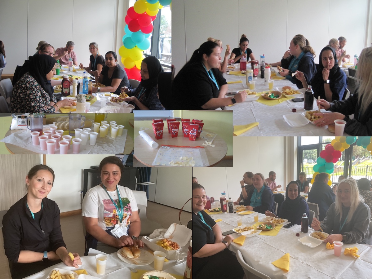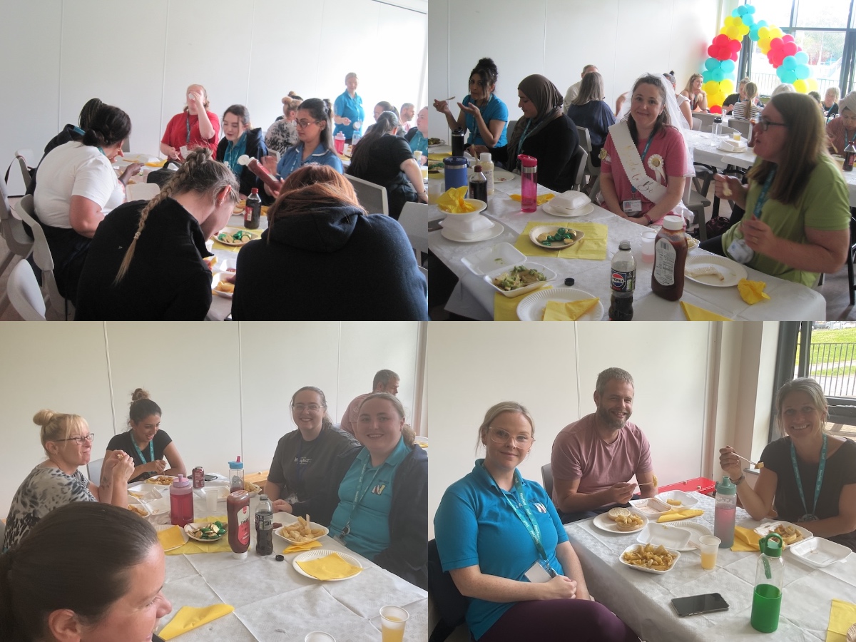 Our wellbeing warrior team of staff had decorated the hall, prepped the food, warmed the peas, beans, gravy and curry sauce, with the Shads Chippy delivering the portions of chips for all to enjoy - thanks to them!