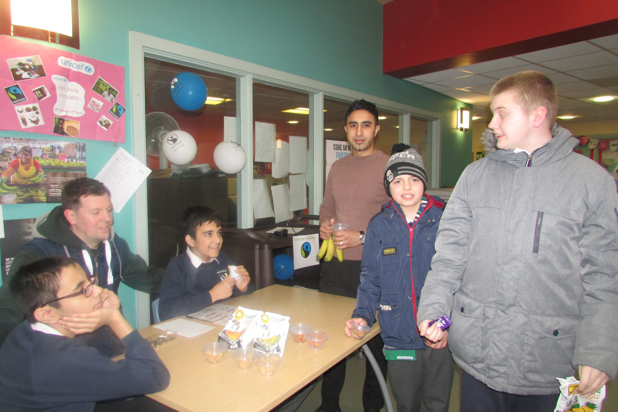 Well, it’s only the 3rd day of Fairtrade fortnight and our daily tuck shop has already run out of chocolate! We’ve still got fresh bananas and other dried fruits on sale for everyone to buy and try! The class R6 are doing a great job selling the fairtrade products - well done guys Luckily, teacher Helen will be able to get more treats after school today to keep up with the demand - so keep bringing your money! Elsewhere Class 1 and R1 enjoyed a café in their class rooms with hot chocolate and cakes.