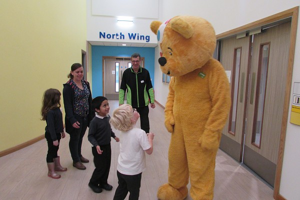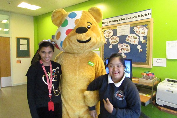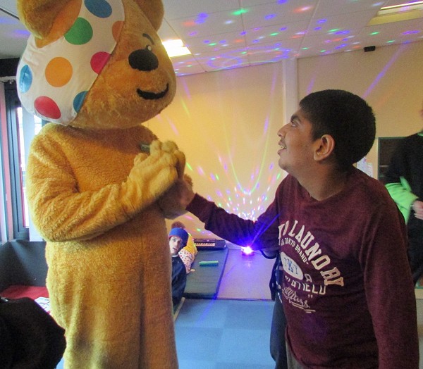 Today we’ve had lots of spotty fun, raising money for Children in Need. Everyone has dressed up, or down in spotty outfits, Pudsey clothes or just their comfy jeans! There has been an Art competition with some fabulous yellow Pudsey slipper socks for the three lucky winners - one from each age phase! We held a cake stall where children and staff bought lots of yummy treats, including Pudsey biscuits. This morning the big yellow man himself visited - Pudsey travelled firstly to our new School for Autism @ Newfield, then moved into the main school where he saw all the children from EYFS right up to Post 16 - what a busy visit. At lunchtime pupils and staff were treated to Pudsey Pie and peas - don’t worry, it’s actually cheese and onion, not bear filling - and the catering team had made some lovely Pudsey biscuits for children to enjoy for pudding. This afternoon we’ve had a disco in the Main School hall where we danced and sang along. The winners of the art competition were announced at the start - Ahmad from EYFS, Rayan from Primary and Suha from 14-19 phase - well done to all for some fabulous Pudsey artwork from painting to collage!