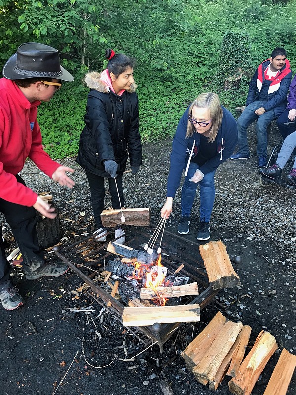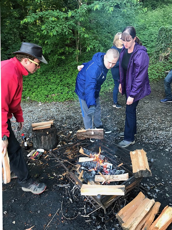 Everyone is enjoying toasting the marshmallows and singing campfire songs.