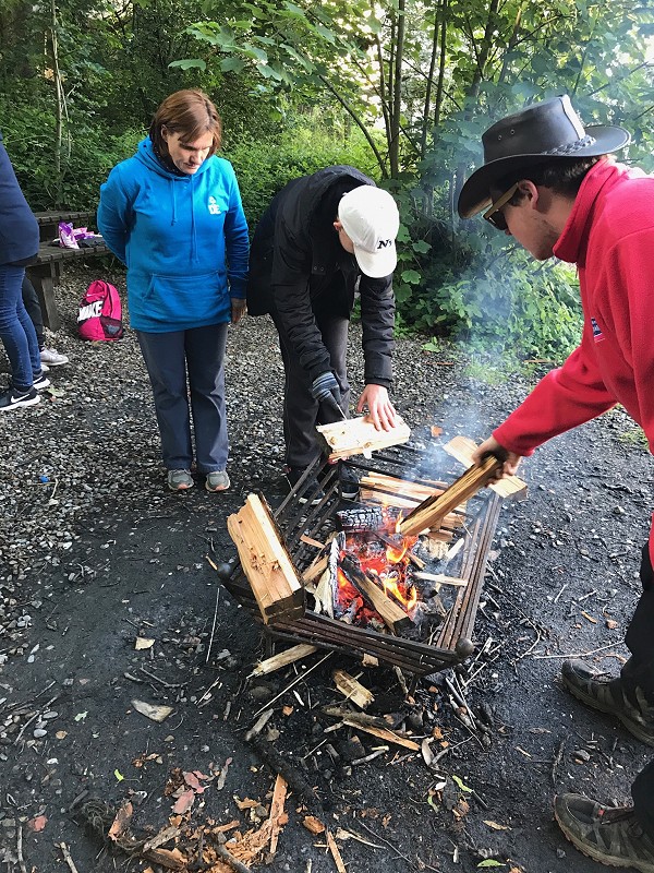This evening the sun has come out and we are enjoying sitting around the campfire in the great outdoors.