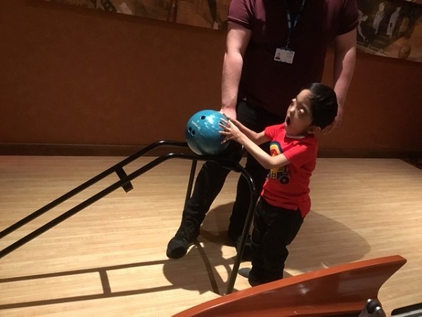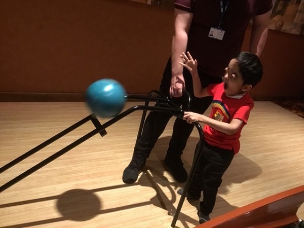 They had a look round at all the lovely plants - smelling the flowers and looking at the fancy ornaments for the garden. Then they had lunch, and afterwards went into the entertainment centre and had a go at bowling - some of them had never done it before but were really good at it and had a great time pushing the heavy balls down the ramps to try to knock over the pins.