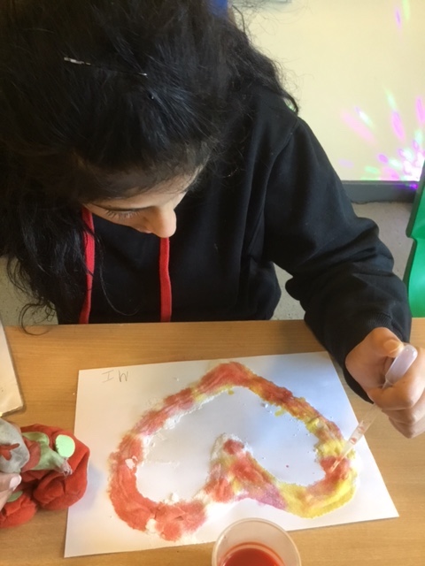 In school, we’ve been embracing the love this week and have had fun doing some valentine themed activities. We painted heart designs in the style of Kandinsky, made salt hearts and painted them with food colours, matched and decorated hearts and made some strawberry play dough and cut heart shapes out.