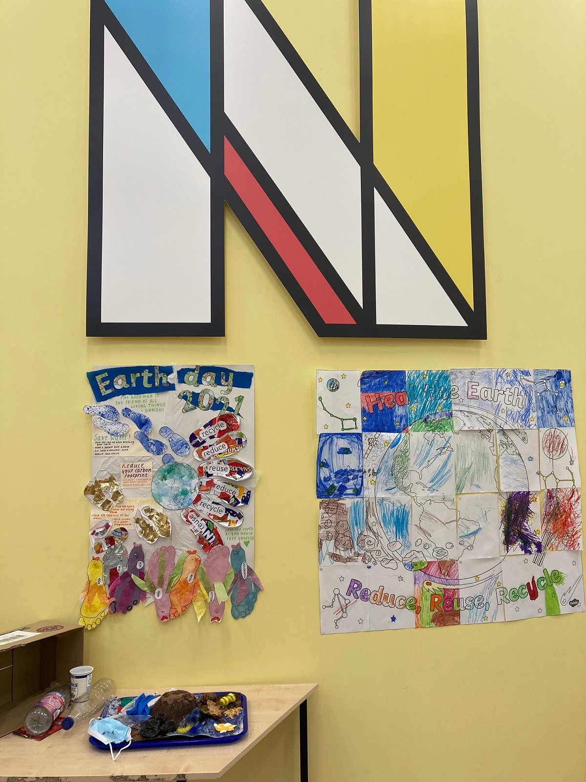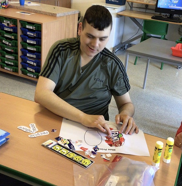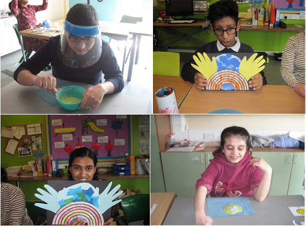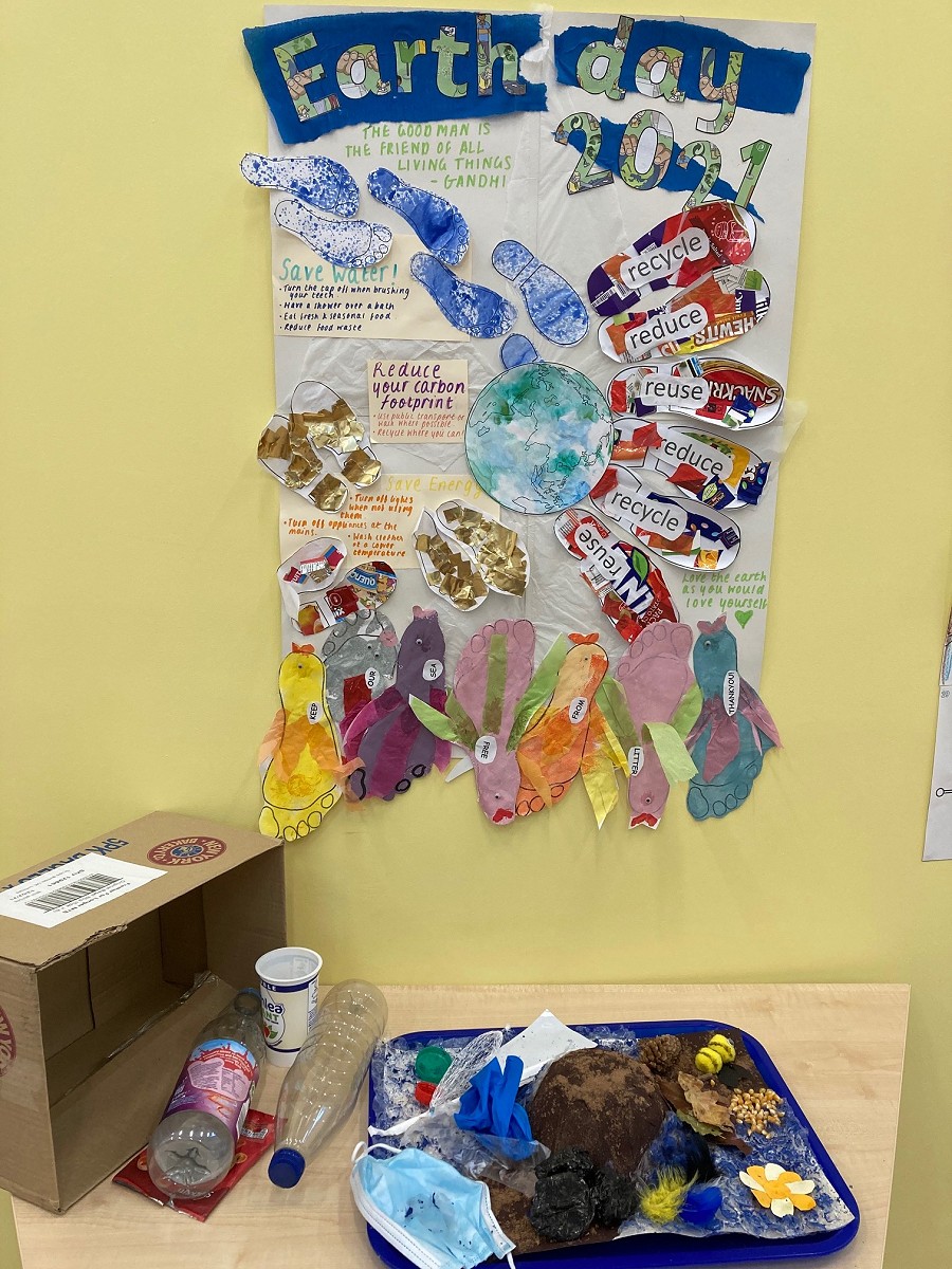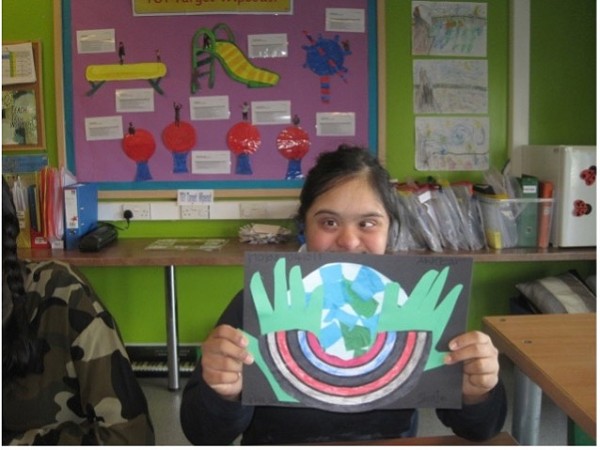In the school for Autism, each class has utilised their imagination to decorate footprints on various environmental themes such as conserving water, saving energy and recycling. All artwork has then been pulled together to create a huge poster in our main entrance.