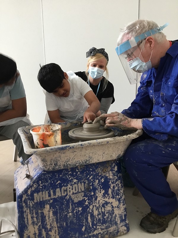 Here are some more pictures, this time of children from the school for Autism at Newfield taking part in pottery workshops with our community potter Alistair. They had a great time watching the wheel spin and some even braved tossing the clay. Everyone had a great time and some of the staff think we should have him back every week!