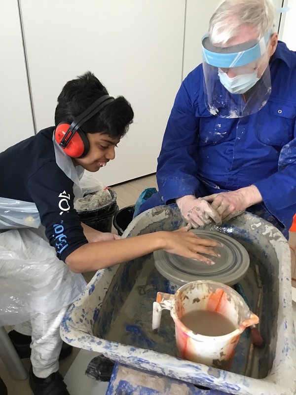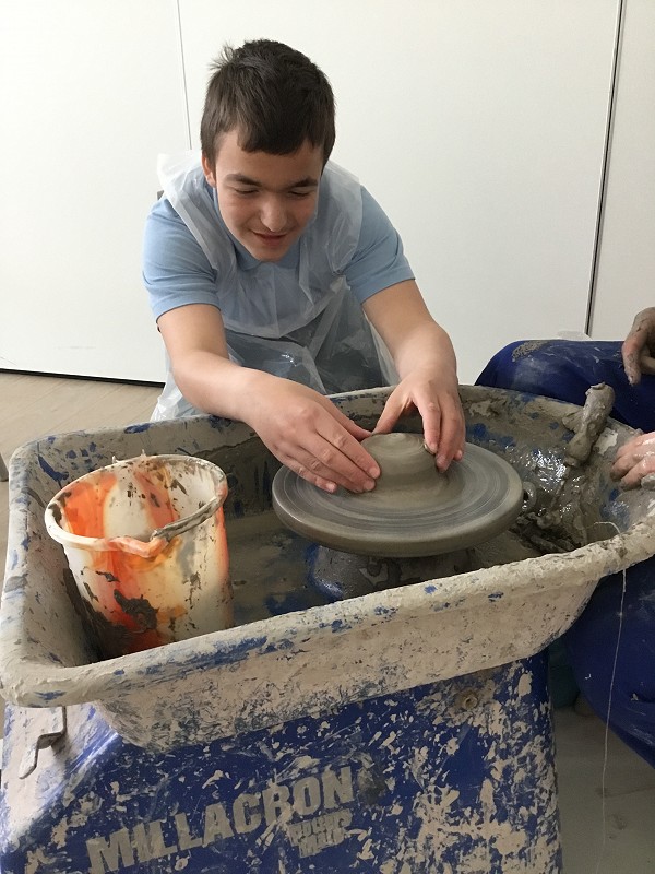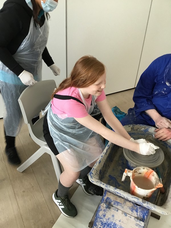 Today, we had a special visitor in the school for autism. The potter man, Alistair came into school to work with pupils to make some pottery and other objects in clay. They were able to make clay pots using the potters wheel and pressing the lever to make the wheel turn. The pupils were really focused during the session. They have had a lovely time.