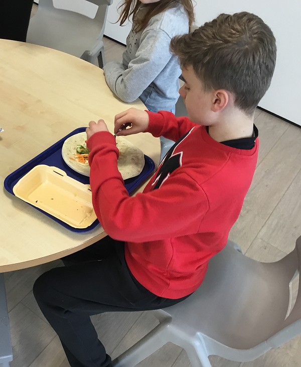 Pupils chose their own tasty fillings and prepared their own wrap under supervision from Kerry from our kitchen team, who showed them how to fill and roll their wraps. This gives a valuable learning experience in a real food preparation environment with a trained professional!