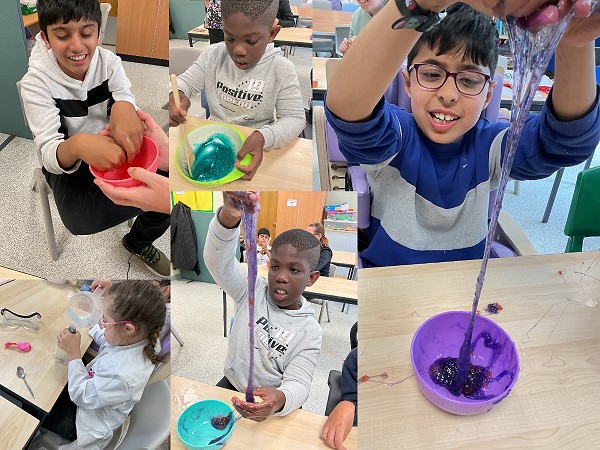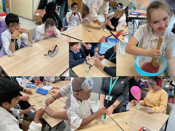 S2 were busy at the Inter-Schools Athletics Competition at Broadfield Special School and so missed the science fair last week, so they have been doing some experiments in class. They dressed up as scientists wearing white coats and safety goggles. Firstly, they made slime using glue and contact lens solution. It didn’t work so they used slime powder and added glitter instead. They loved this activity but it was really difficult to get rid at the end. It was stuck to the tables and our hands.