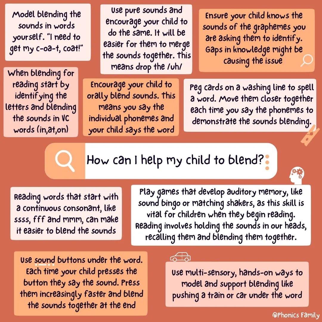 Parents and carers can access information about reading and phonics here or by speaking to their child’s class teacher. Please click the links for further support for parents wishing to help children to blend, or with segmenting and spelling.
