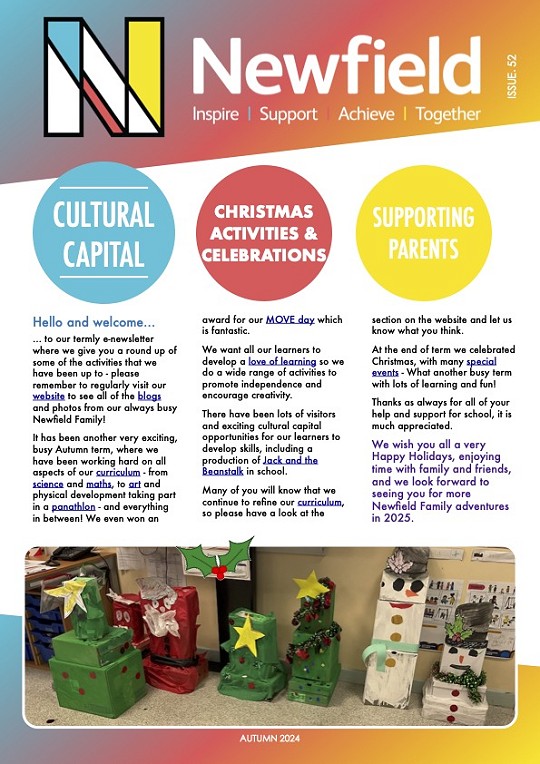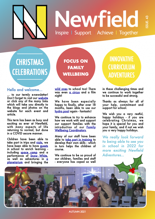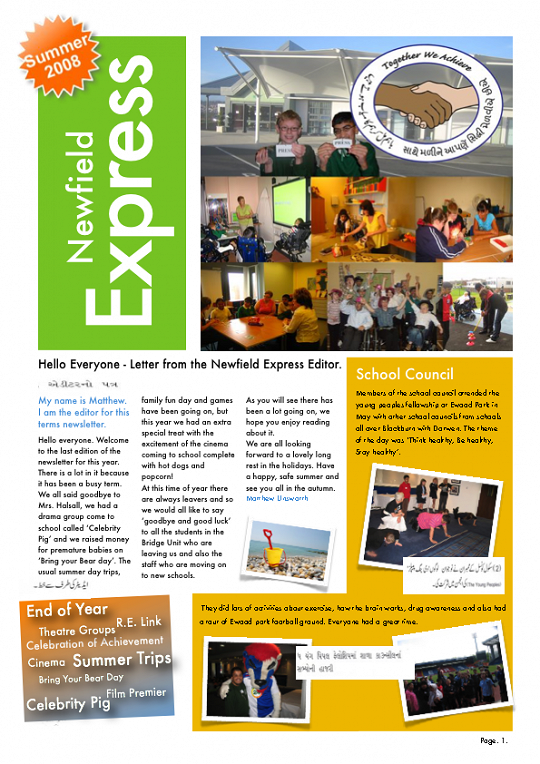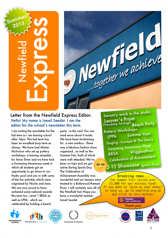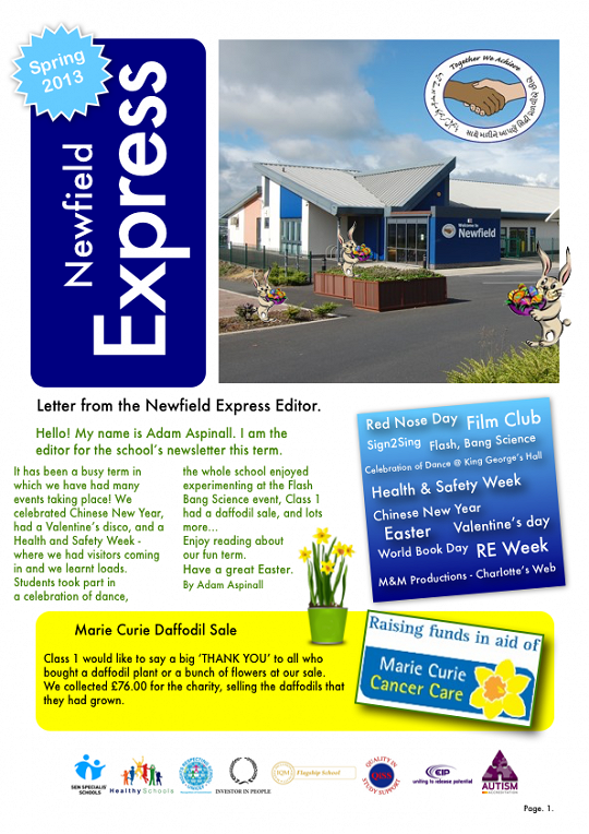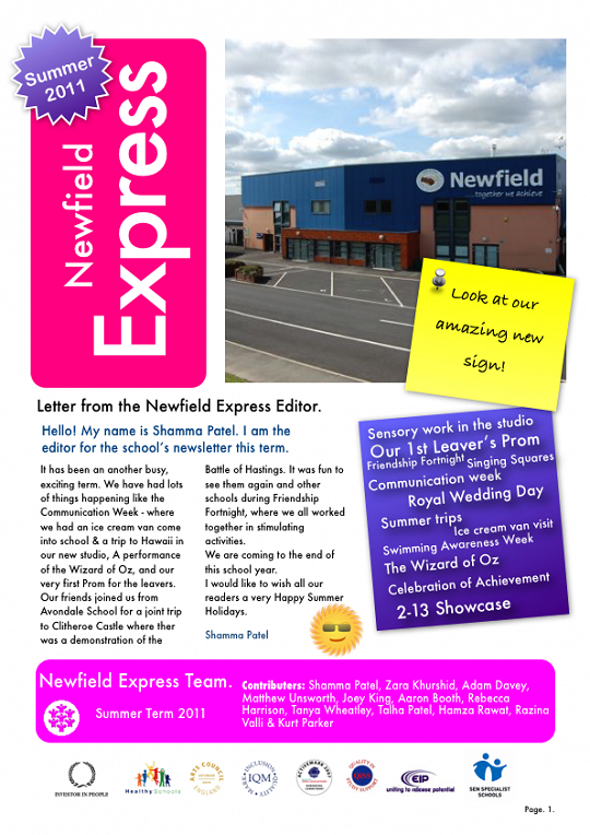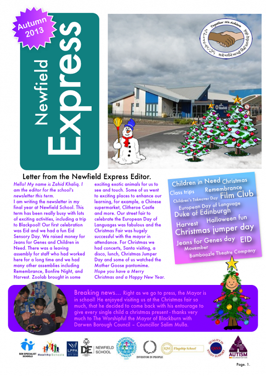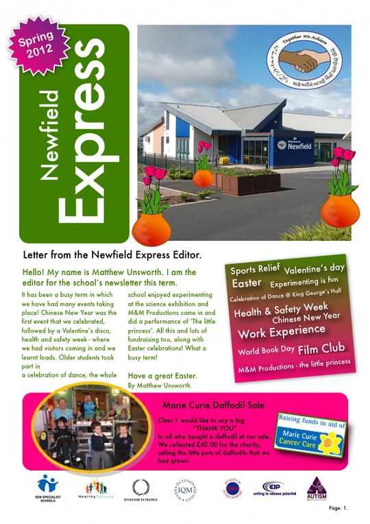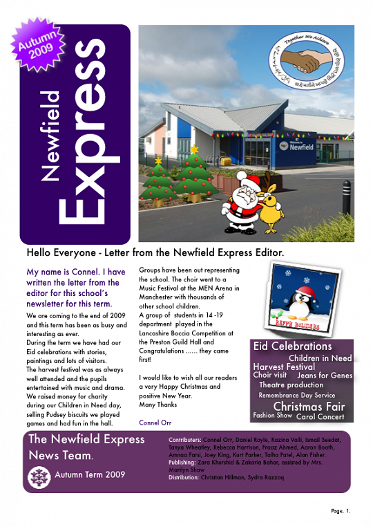 Each term older students, with assistance from staff, put together our newsletter. They really enjoy writing articles, taking photographs, interviewing people and letting everyone know what is happening in and around school – just look at any edition to see how many exciting things are going on all the time at Newfield!