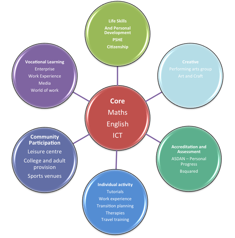 Throughout the 16-19 curriculum, all students complete modules that contribute towards an ASDAN qualification. Individual accreditation routes are personalised and based on the interests and abilities of each student.