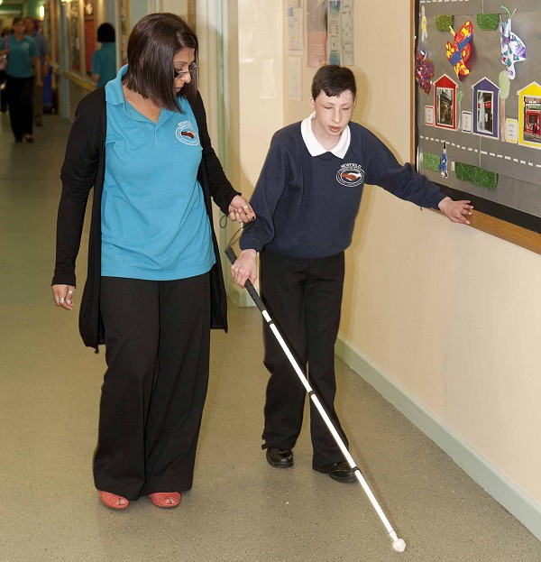 Learners with VI will also benefit from mobility training, including use of a cane, to help them to develop their independenace and work towards enabling them to move around familiar environments safely, both inside and outside of school.